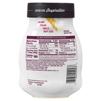 Nutritional Information Diet Info and Calories in. 12 rows Calories In Creamy Italian Dressing low fat Calories. Visit CalorieKing to see calorie count and nutrient data.